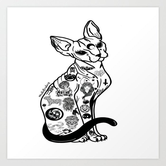 Sphynx Cat Halloween Cat Hairless Cat Tattooed Cat Art Print By Madhattersdiary Society6