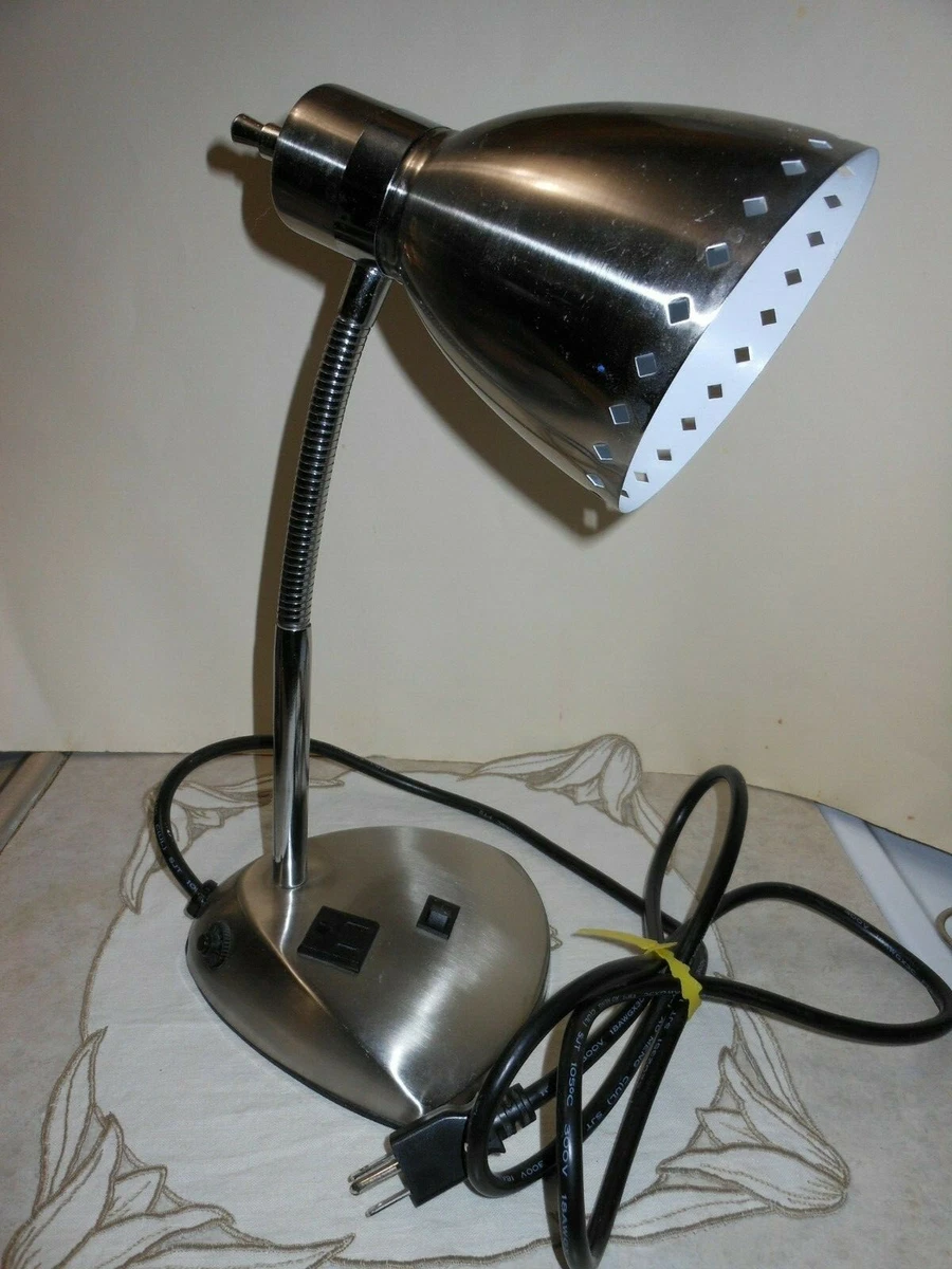 Vintage Retro Silver Metal Goose Neck Desk Lamp W On Off Outlet Plug In On Base Ebay